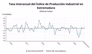 Tasa interanual del Índice de Producción Industrial en Extremadura? en los cinco últimos años. - EPDATA