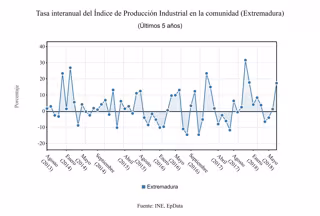 La producción industrial creció un 17,4 por ciento en Extremadura en julio en comparación con el mismo mes de 2017, el mayor repunte por comunidades, según ha informado este viernes el Instituto Nacional de Estadística (INE).