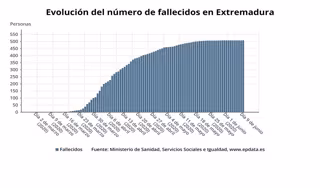 Gráfico sobre la evolución del número de fallecidos por Covid-19 en Extremadura hasta le 9 de junio de 2020 - EPDATA