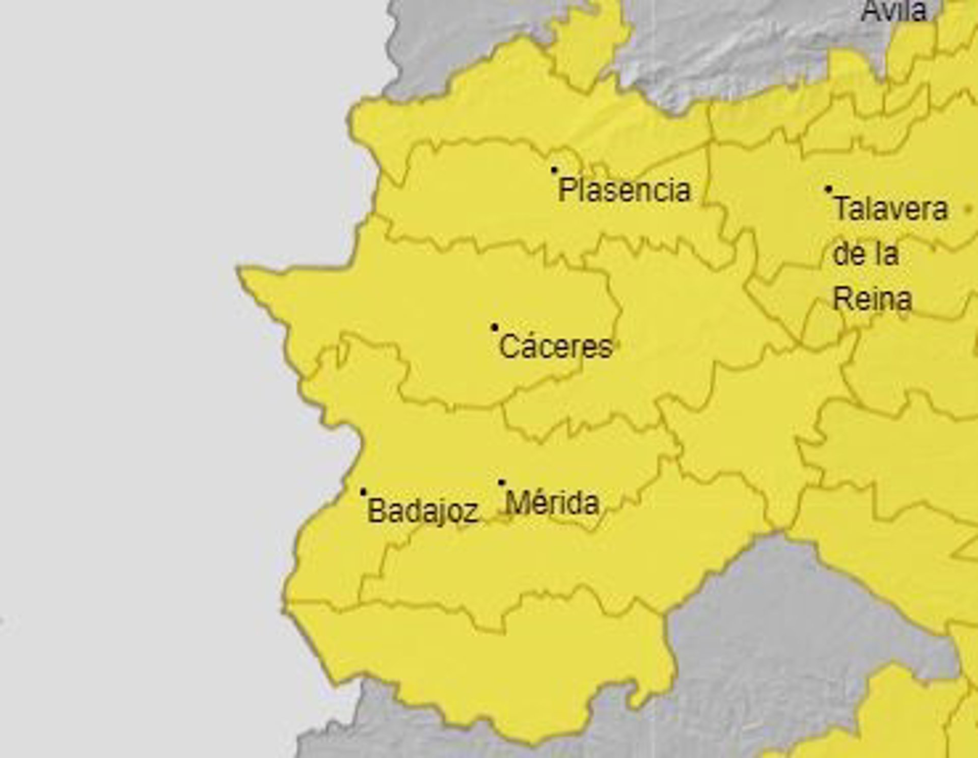Según la previsión de la Agencia Estatal de Meteorología (Aemet), en todas las zonas de la región se podrían alcanzar los 39 grados, excepto en Villuercas y Montánchez y Norte de Cáceres, que estarán en riesgo por temperaturas de 38 grados, entre las 13,00 y las 21,00 horas.