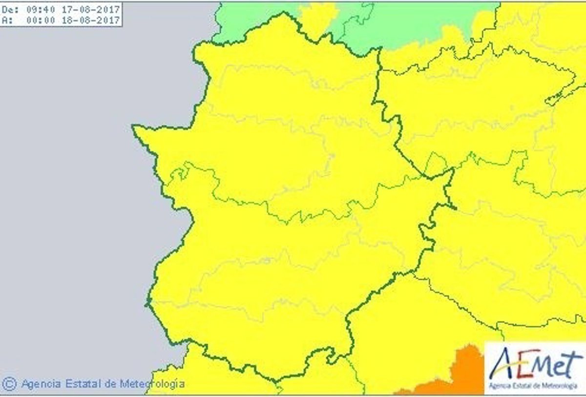 La comunidad autónoma de Extremadura permanecerá en su totalidad en riesgo de nivel amarillo por altas temperaturas, que alcanzarán los 39 grados en algunos puntos de la región, al menos hasta el próximo sábado, 20 de agosto.