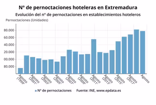 Evolución del número de pernoctaciones hoteleras en Extremadura - EPDATA