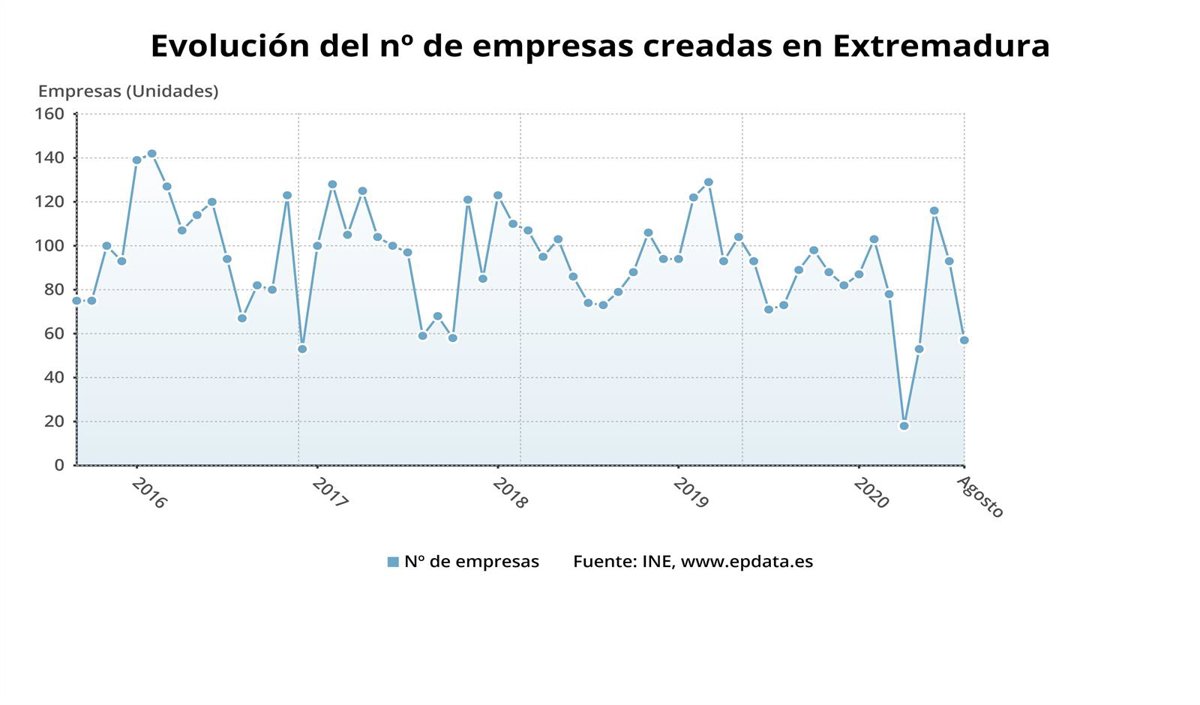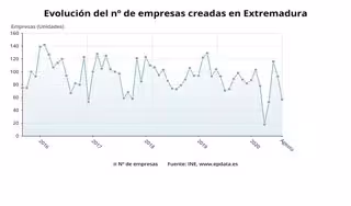 La comunidad autónoma de Extremadura registró el pasado mes de agosto la creación de 57 sociedades mercantiles, lo que supone un descenso del 21,9 por ciento con respecto al mismo mes del año anterior.