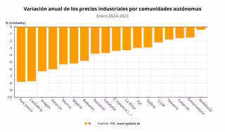 De acuerdo con los datos de Estadística, todas las comunidades han presentado tasas negativas de precios industriales al finalizar el primer mes del año 2024.