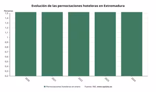 Las pernoctaciones en establecimientos hoteleros en Extremadura han aumentado un 2,19% en enero en comparación con el mismo mes del año anterior hasta sumar un total de 131.484 pernoctaciones y encadena tres meses de crecimiento, según los datos publicados por el Instituto Nacional de Estadística (INE).