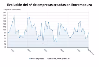 En concreto, según datos del Instituto Nacional de Estadística (INE), publicados este viernes y recogidos por Europa Press, en Extremadura se crearon en el noveno mes del año 89 empresas y se disolvieron once.
