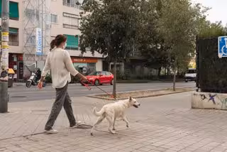 Una mujer paseando a un perro por la calle - UGR/ARCHIVO