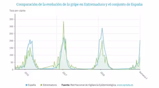 Sin embargo, el informe de la Subdirección de Epidemiología de la Dirección General de Salud Pública del SES señala que la tendencia es "creciente", por lo que se espera que la región "supere en breve el umbral epidémico", señala la Junta de Extremadura en nota de prensa.