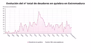 Evolución del número de deudores en quiebra en Extremadura - EPDATA
