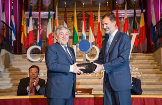 Felipe V entrega el Premio Carlos V a Antonio Tajani - JUNTA DE EXTREMADURA