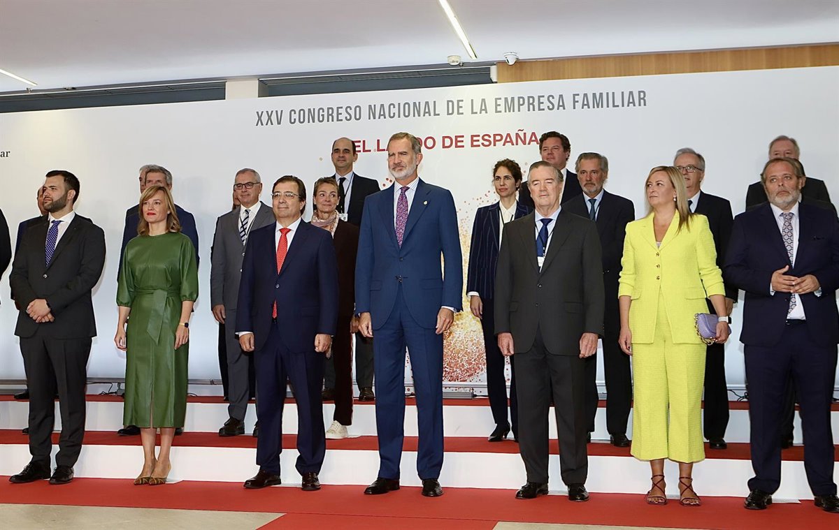 El Rey Felipe VI junto al presidente de la Junta de Extremadura, Guillermo Fernández Vara, y otras autoridades en la inauguración del XXV Congreso Nacional de la Empresa Familiar en Cáceres - JORGE ARMESTAR/EUROPA PRESS