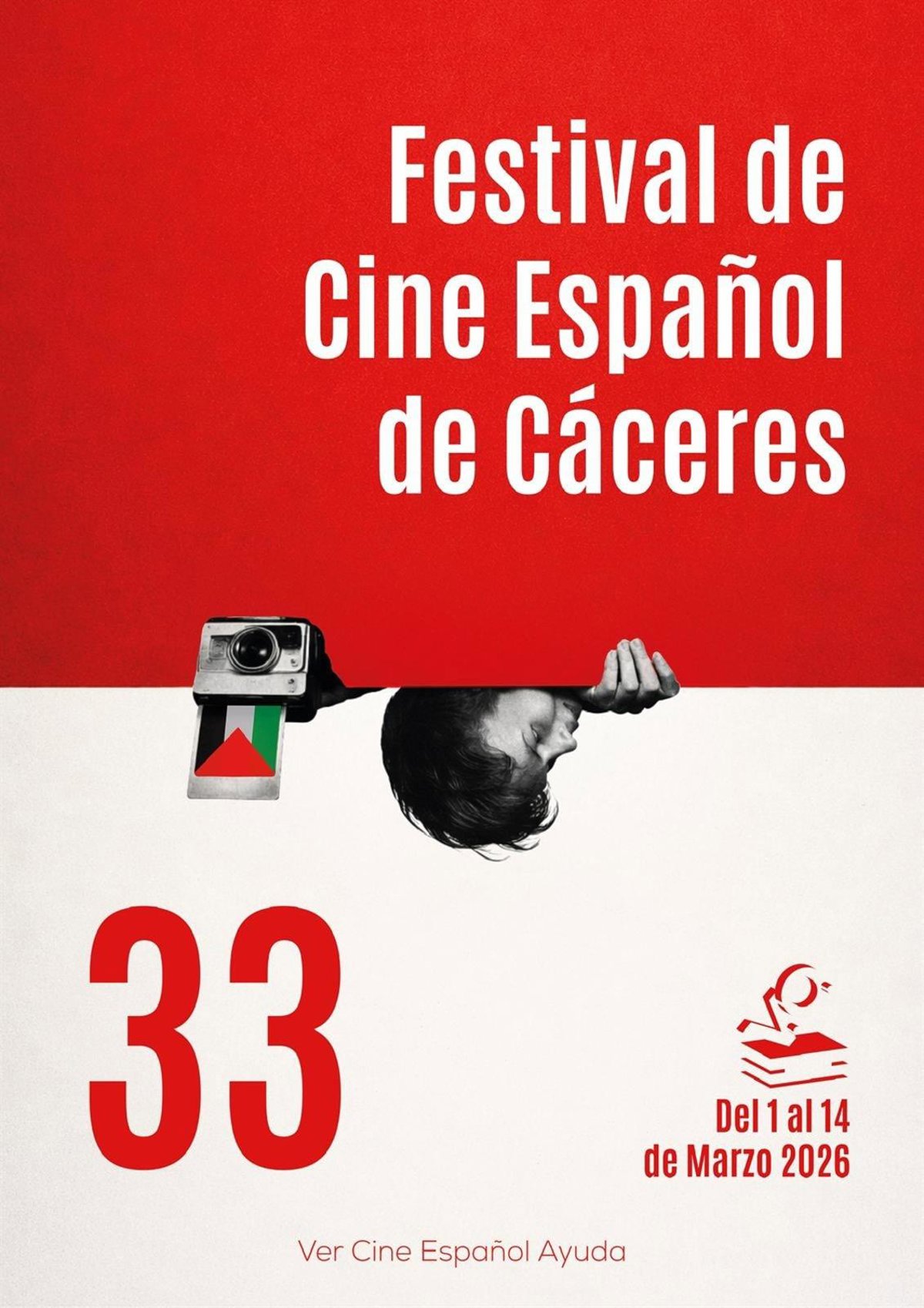 Con una pequeña referencia a Palestina (un fragmento de su bandera), el cartel ganador del concurso de carteles convocado para ilustrar el 33º Festival de Cine Español de Cáceres se exhibe a partir de este domingo en el Espacio de Arte y Acción BelleArtes junto a otros 20 carteles, seleccionados entre los 123 presentados a la convocatoria lanzada por los organizadores del festival la Fundación ReBross.