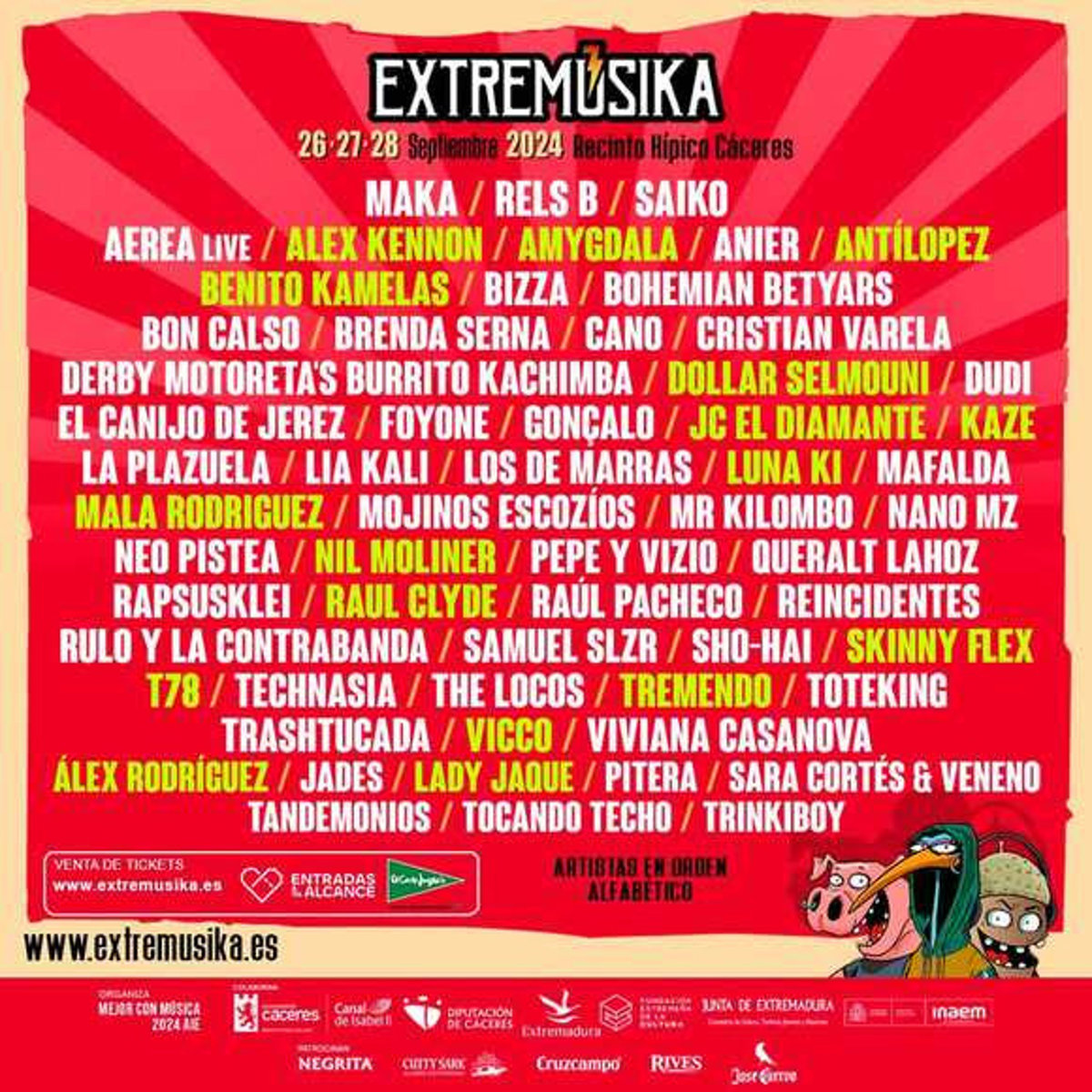 El festival Extremúsika, que se celebrará en el recinto hípico de Cáceres del 26 al 28 de septiembre, ha cerrado cartel con la incorporación de 17 nuevos artistas, entre los que se encuentran Mala Rodríguez, Kaze y Nil Moliner, que se suman al total de 60 grupos que pasarán por la capital cacereña.