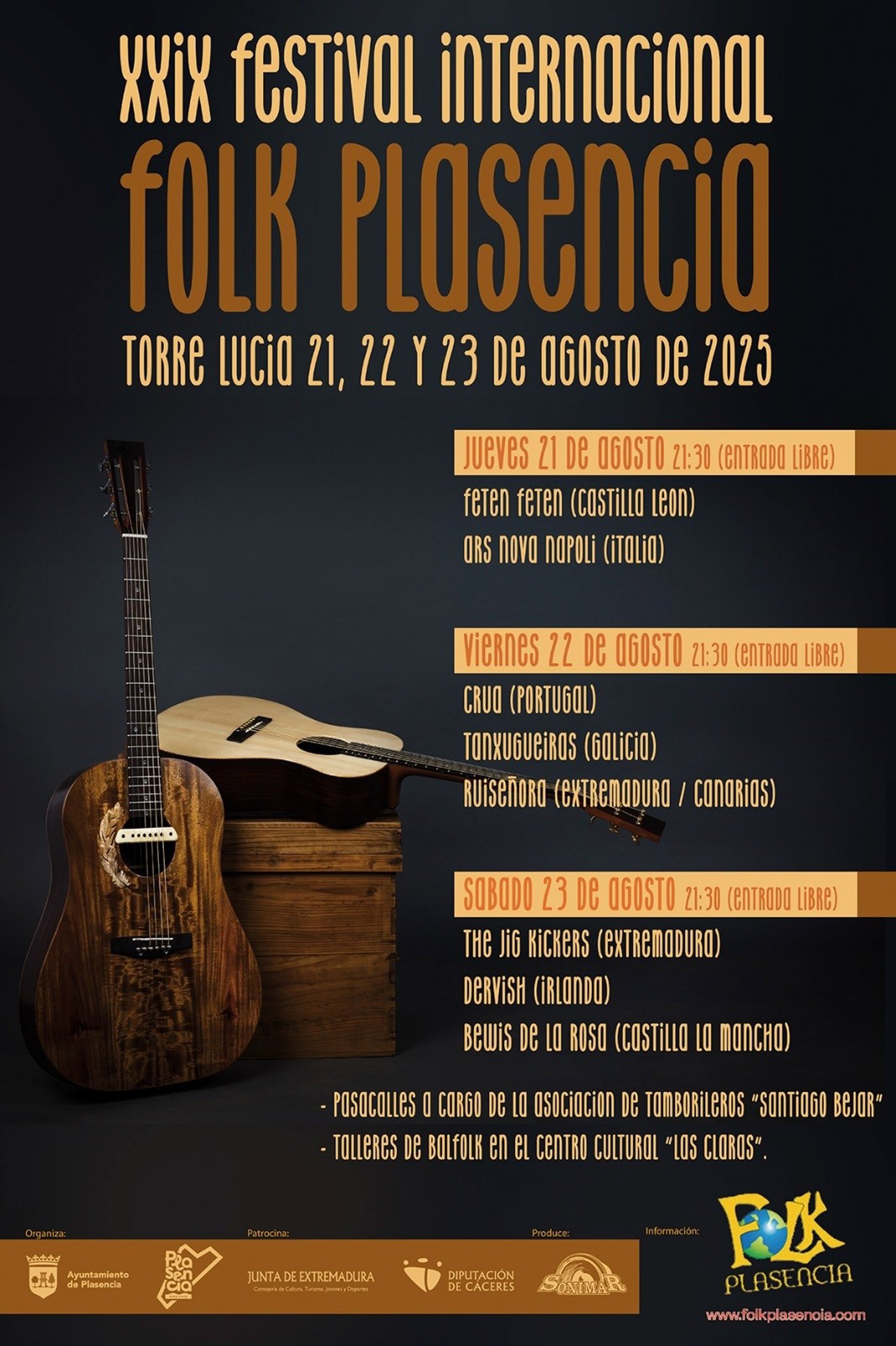 El XXIX Festival Internacional Folk está organizado por el Ayuntamiento de Plasencia, con el patrocinio de la Junta de Extremadura y la Diputación Provincial de Cáceres.