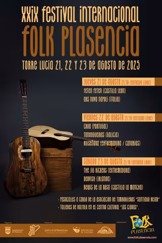 El festival 'Folk Plasencia' celebra su vigésimo novena edición los días 21, 22 y 23 de agosto con ocho conciertos gratuitos en el recinto de Torre Lucía. Se trata de una nueva cita imprescindible para todos los amantes de la cultura, la música y las tradiciones que inlcuye las actuaciones de grupos y artistas de distinta procedencia y estilos y las habituales actividades paralelas.