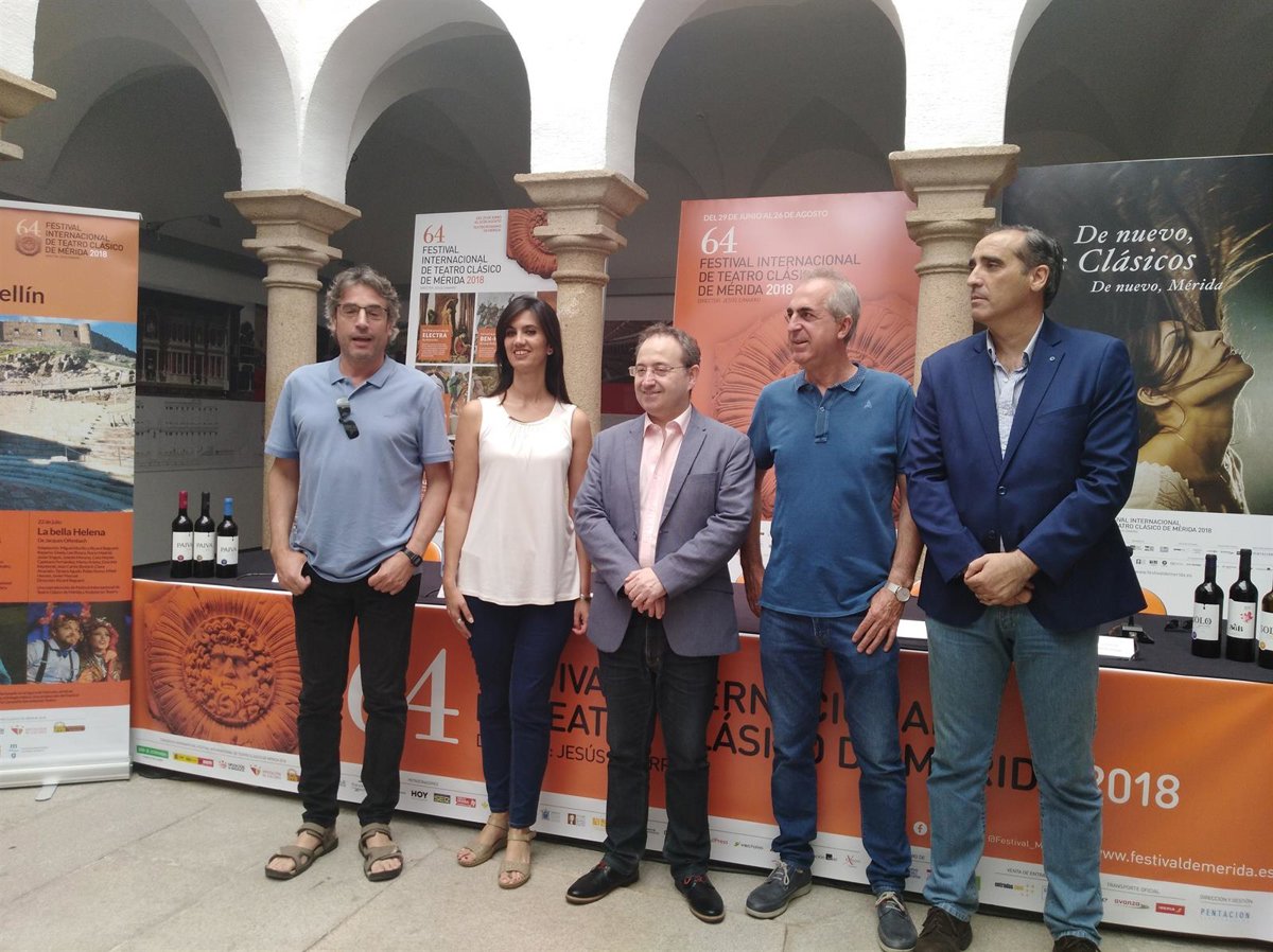 La extensión del Festival de Teatro en Medellín, que celebra este año su quinta edición, ha sido presentada este lunes en la capital emeritense por el director del Festival de Teatro Clásico Mérida, Jesús Cimarro; la secretaria general de Cultura de la Junta de Extremadura, Miriam García Cabezas; el alcalde de Medellín, Antonio Parra; el actor y productor de 'Viriato' Fernando Ramos; y el productor de 'La bella Helena', Juan Carlos Parejo.