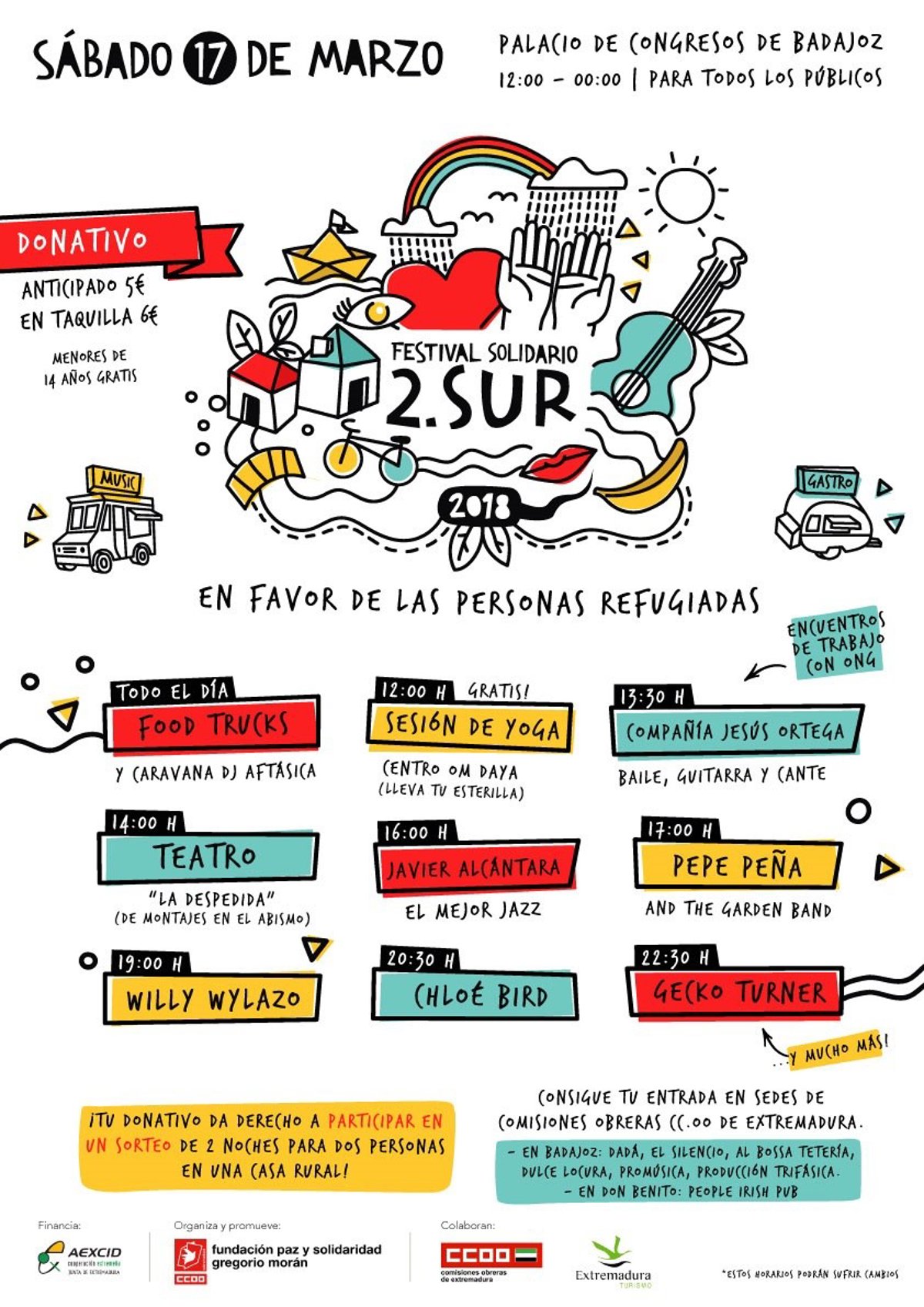 La recaudación íntegra del festival se destina a financiar acciones de ayuda humanitaria y emergencia social en favor de las personas refugiadas "como respuesta a la dramática situación de millones de personas refugiadas que huyen de la miseria, de la pobreza y de la guerra", informa en nota de prensa la Fundación Paz y Solidaridad de CCOO de Extremadura.