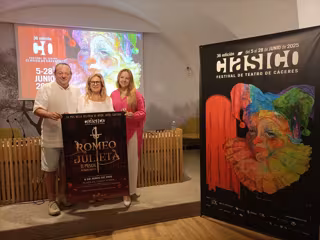 'Romeo y Julieta' ha sido presentado este jueves en rueda de prensa por la directora del espectáculo e intérprete como Julieta, Silvia Villaú; el productor del espectáculo, Tomás Padilla, y la directora del festival cacereño, Marisa Caldera.
