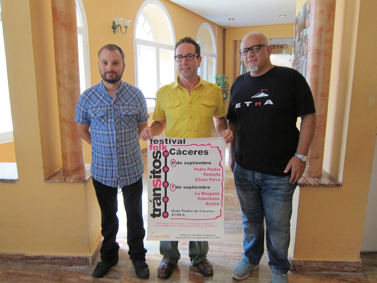 El festival 'Tránsitos', que nació hace ahora siete años en la isla canaria de Tenerife, aterriza en Cáceres con lo mejor de la música tradicional folk en una primera edición del certamen que reunirá a los artistas Eliseo Parra, Pedro Pastor, Pentalfa, Acetre, Suburbano Banda y La Musgaña en dos días de actuaciones, el 6 y 7 de septiembre, en el Gran Teatro de la capital cacereña.