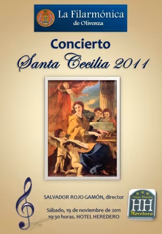 La Filarmónica de Olivenza ofrecerá este sábado, día 19, su tradicional concierto de Santa Cecilia, a las 19,30 horas en el Hotel Heredero de la citada localidad pacense.