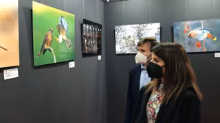 La exposición 'Las aves silvestres. Concurso Fotográfico de la Naturaleza' reúne 50 imágenes presentadas al certamen organizado en el seno de la Feria Internacional de Turismo Ornitológico, que se ha inaugurado este sábado, como única actividad presencial del programa de la edición de este 2021, condicionada por la pandemia de Covid-19.