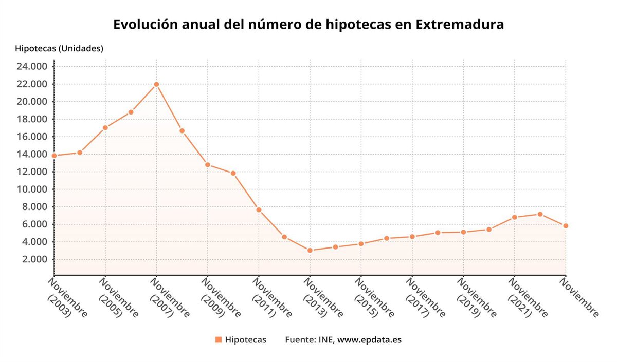 Evolución de las hipotecas en Extremadura. - EPDATA
