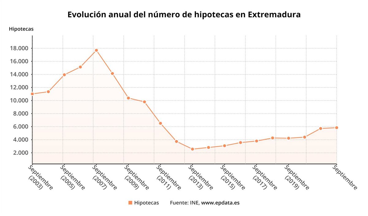 Evolución de la firma de hipotecas en Extremadura. - EPDATA