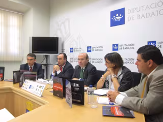 En esta rueda de prensa ha estado presente, acompañando a Zarrías y Cortés y entre otros representantes de la entidad provincial de Badajoz, la delegada del Gobierno en Extremadura, Carmen Pereira.
