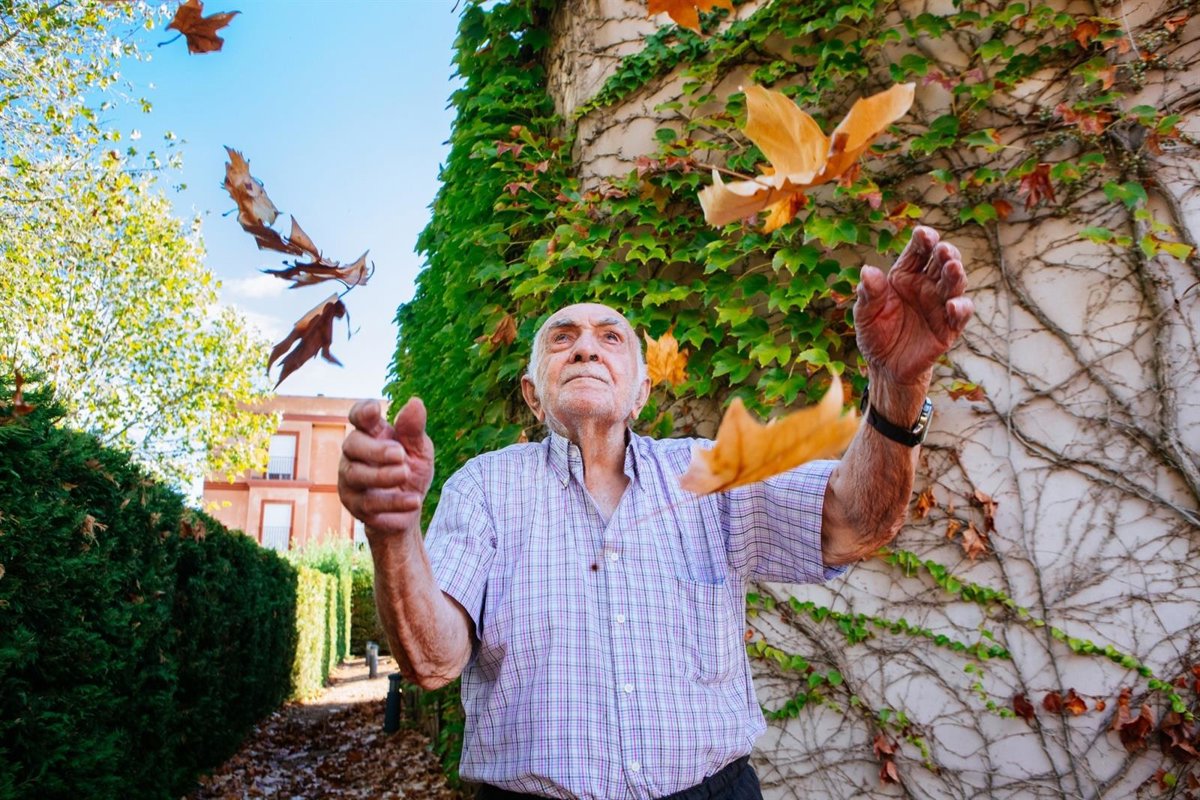 La imagen fue tomada mientras Lorenzo participaba en sus terapias de estimulación en el centro de día al que antes acudía, siempre con una sonrisa y una entrañable humanidad, en la que inmortaliza el momento en el que cogió las hojas de otoño que habían caído al suelo y las lanzaba al aire.
