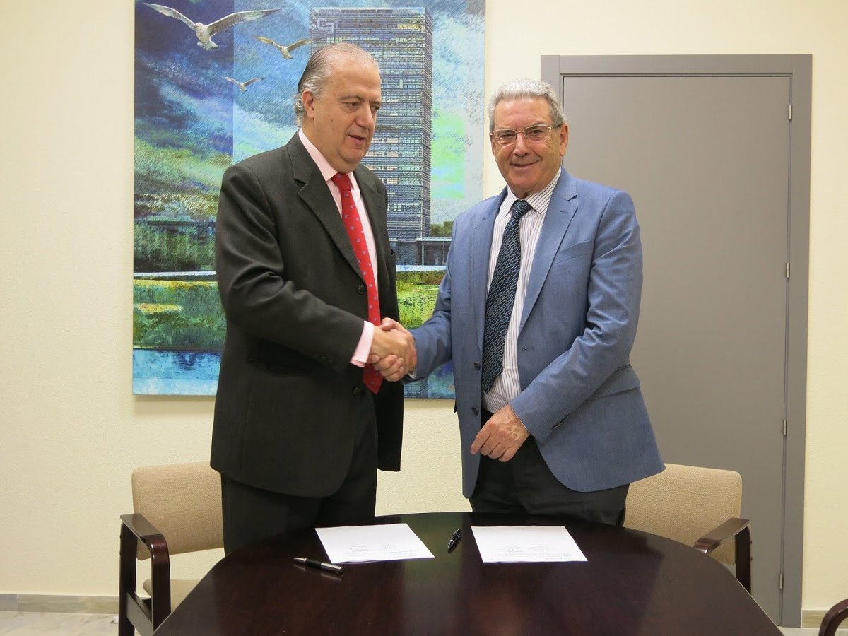 El presidente de Fundación CB, Emilio Vázquez Guerrero, y el presidente de la Real Academia de Jurisprudencia y Legislación de Extremadura, Francisco La Moneda Díaz, han firmado un convenio de colaboración en la Residencia Universitaria de Fundación CB (RUCAB) de Badajoz.