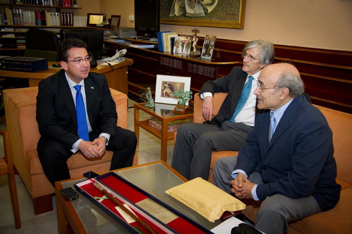 El presidente del Parlamento de Extremadura, Fernando Manzano, y la vicepresidenta primera de la Mesa de la Cámara regional, Consuelo Rodríguez, han recibido este martes de manos del presidente de la 'Fundación Juan de Ávalos', Juan de Ávalos, sendas medallas honoríficas en reconocimiento a la labor de difusión realizada por la Asamblea de la obra de este artista emeritense.