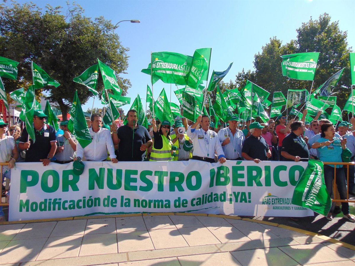 Bajo el lema 'Por nuestro ibérico. Modificación de la Norma de Calidad ¡YA!', ganaderos, agricultores y ciudadanos de a pie han mostrado su "malestar" ante el "despropósito" que supone para el porcino ibérico la actual Norma de Calidad, señala en nota de prensa APAG Extremadura Asaja.