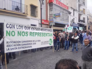 Una concentración de ganaderos convocada por asociaciones agrarias minoritarias, como son La Unión de Extremadura, la Asociación de Ganaderos 2008 y la Asociación de Ganaderos de La Vera, en la que asimismo han reclamado su participación en la mesa de negociación que mantiene abierta la Junta de Extremadura con otras formaciones.