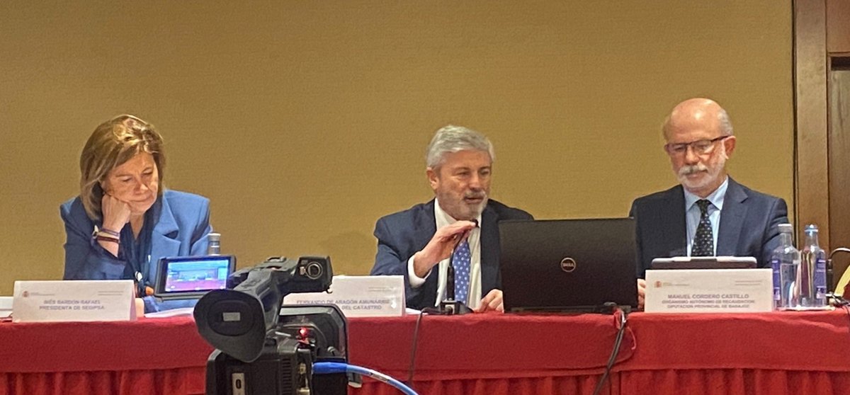 Junto al director general del Catastro, Fernando de Aragón Amunárriz, y la presidenta de Segipsa, Inés Bardón Rafael, en la Mesa de Conclusiones se ha podido ofrecer la visión del Organismo desde su experiencia con el Catastro y conocimientos de la materia que ha sido de "gran utilidad" a los asistentes.
