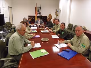 En la reunión participaron el director general de Medio Ambiente, Enrique Julián Fuentes, el jefe de servicio de Ordenación y Gestión Forestal, la jefe de sección de Coordinación de Agentes del Medio Natural y los nueve coordinadores de agentes forestales.