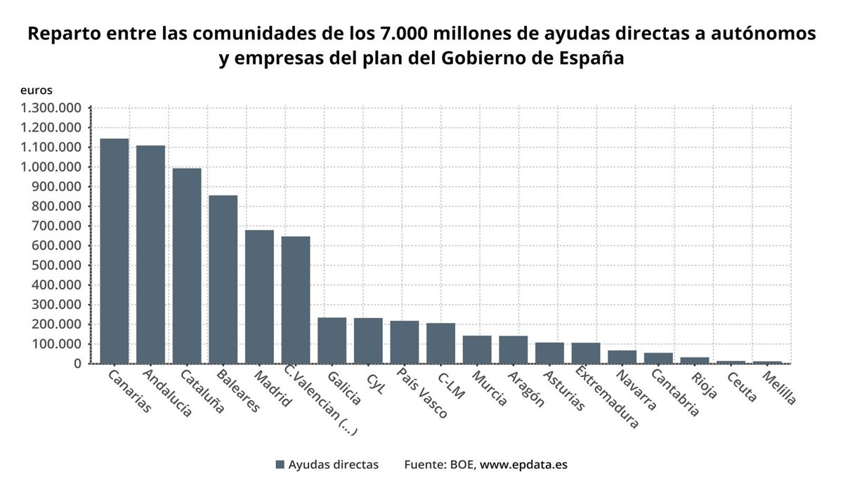 Reparto entre las comunidades de las ayudas directas a empresas y autónomos - EPDATA
