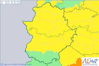 Gran parte de la comunidad autónoma de Extremadura, excepto el sur de la provincia de Badajoz, permanece este domingo, 24 de junio, en alerta amarilla por altas temperaturas, que podrán alcanzar los 39 grados de máxima en algunas zonas de la región.