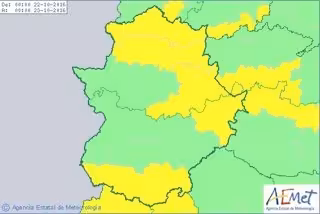 Por su parte, en la zona norte de la provincia de Cáceres la predicción es que se produzcan desde las 3,00 horas del día 22 hasta las 00,00 del día 23 de octubre