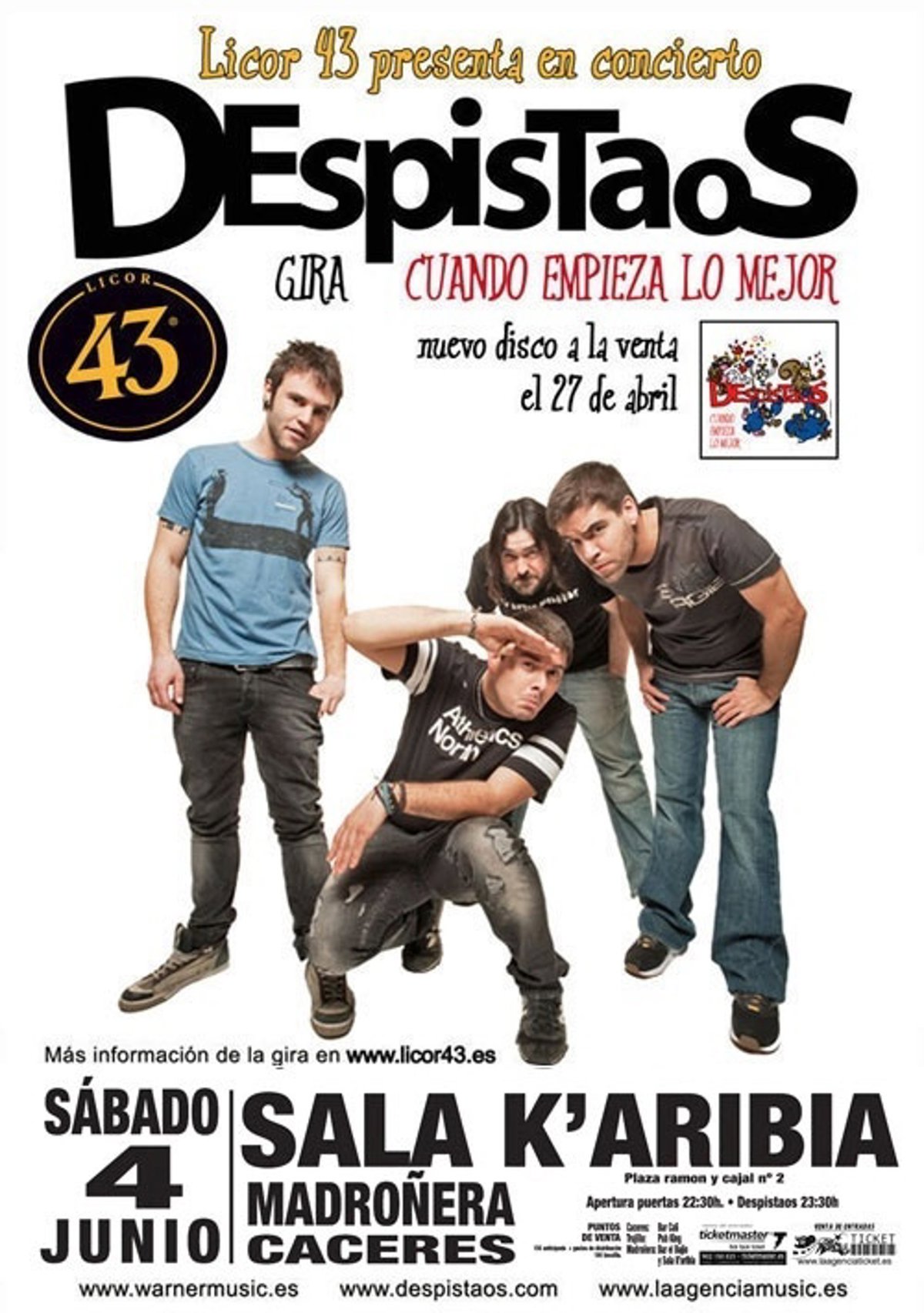 El grupo 'Despistaos' ofrecerá un concierto este sábado, día 4, en la Sala K'aribia de la localidad cacereña de Madroñera, a partir de las 23,30 horas.