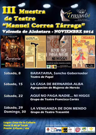 El grupo "Trasantié" de Valencia de Alcántara ofrecerá el montaje "La venganza de Don Mendo" el próximo fin de semana, 29 y 30 de noviembre, dentro de la III Muestra de Teatro Manuel Correa "Tárraga" de dicha localidad cacereña.