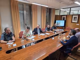 El delegado del Gobierno en Extremadura, José Luis Quintana, la subdelegada en Badajoz, Maribel Cortés, y el jefe de la zona de la Guardia Civil en la región, José Manuel Santiago, han mantenido este lunes una reunión en la Delegación con varios mandos de la Comandancia de la Guardia Civil de Badajoz centrada en una exposición detallada del 'Plan de actuación para la seguridad de explotaciones agrícolas durante la presente campaña de recogida de aceitunas 2025-2026'.