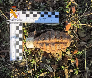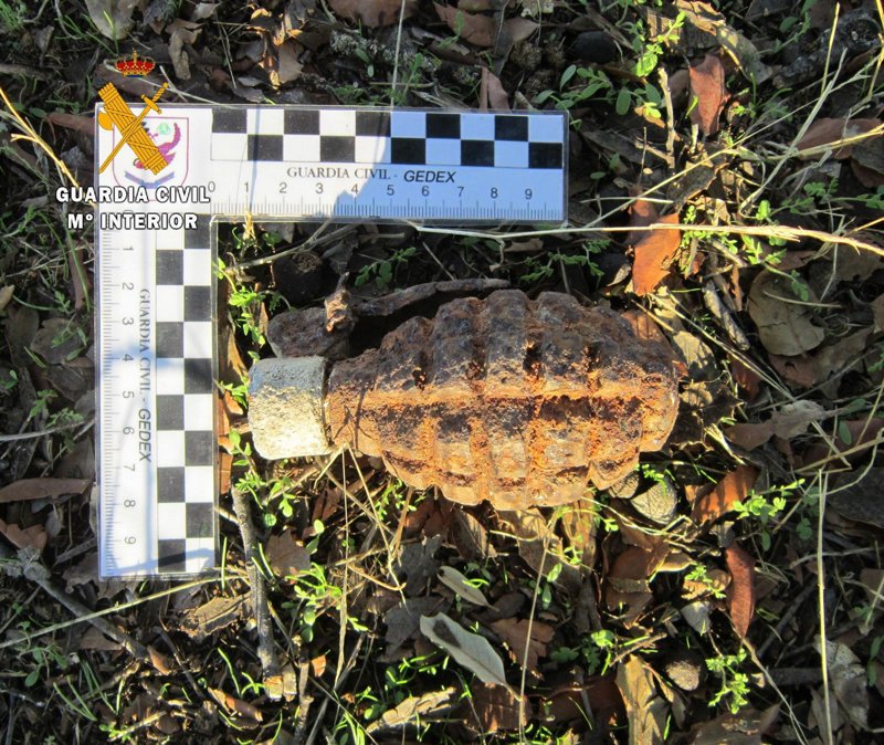 El Grupo de Desactivación de Explosivos de la Guardia Civil ha desactivó una granada de mano de la época de la Guerra Civil, que todavía portaba su palanca de seguridad.