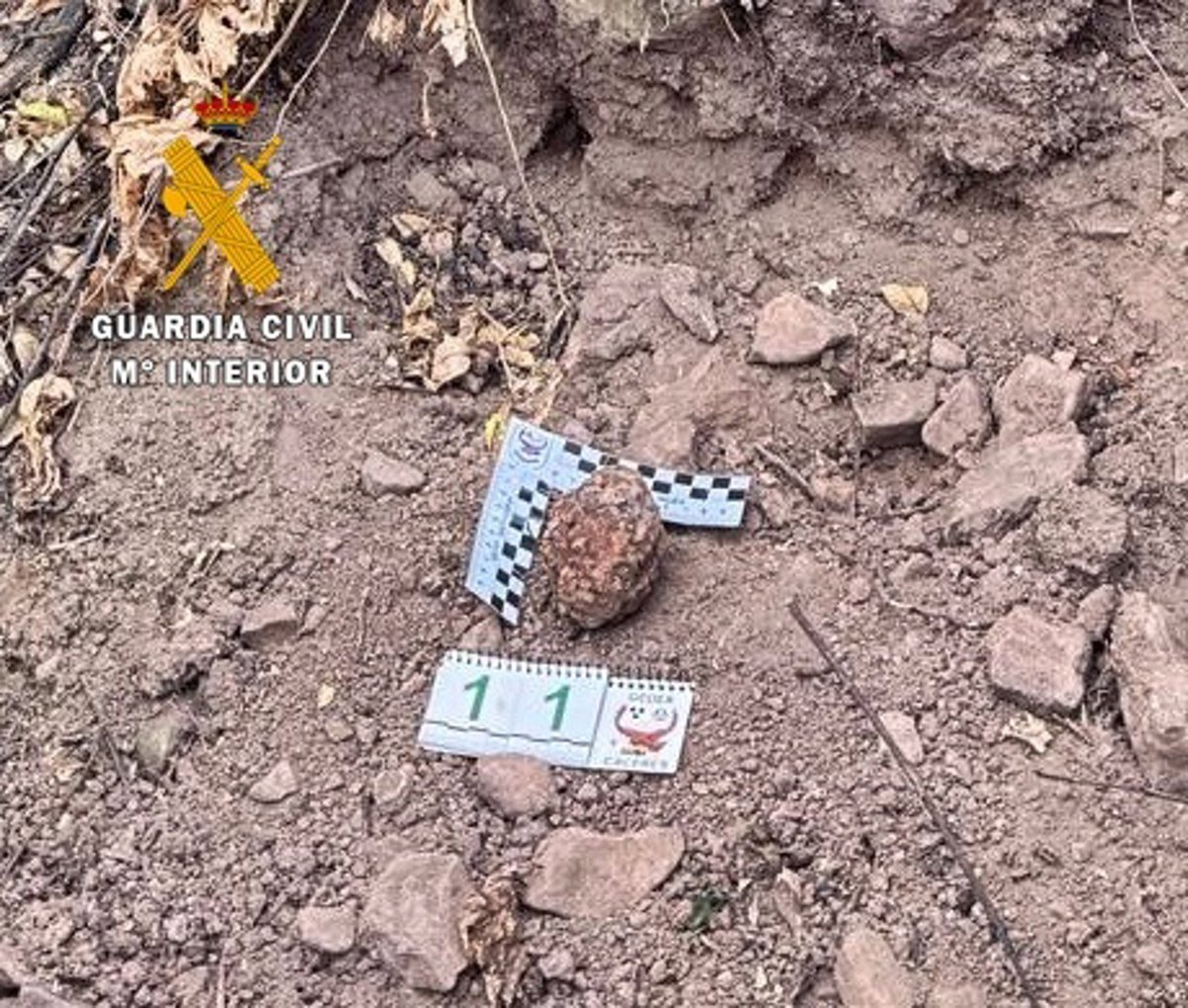 Los agentes activaron el protocolo de actuación en estos casos, acordonando la zona de seguridad y pasaron el aviso al Gedex de la Guardia Civil, con sede en Cáceres, que se trasladó hasta el lugar y una vez analizado y estudiado el artefacto, averiguaron que se trataba de una "granada de mano polaca" de la época de la Guerra Civil.
