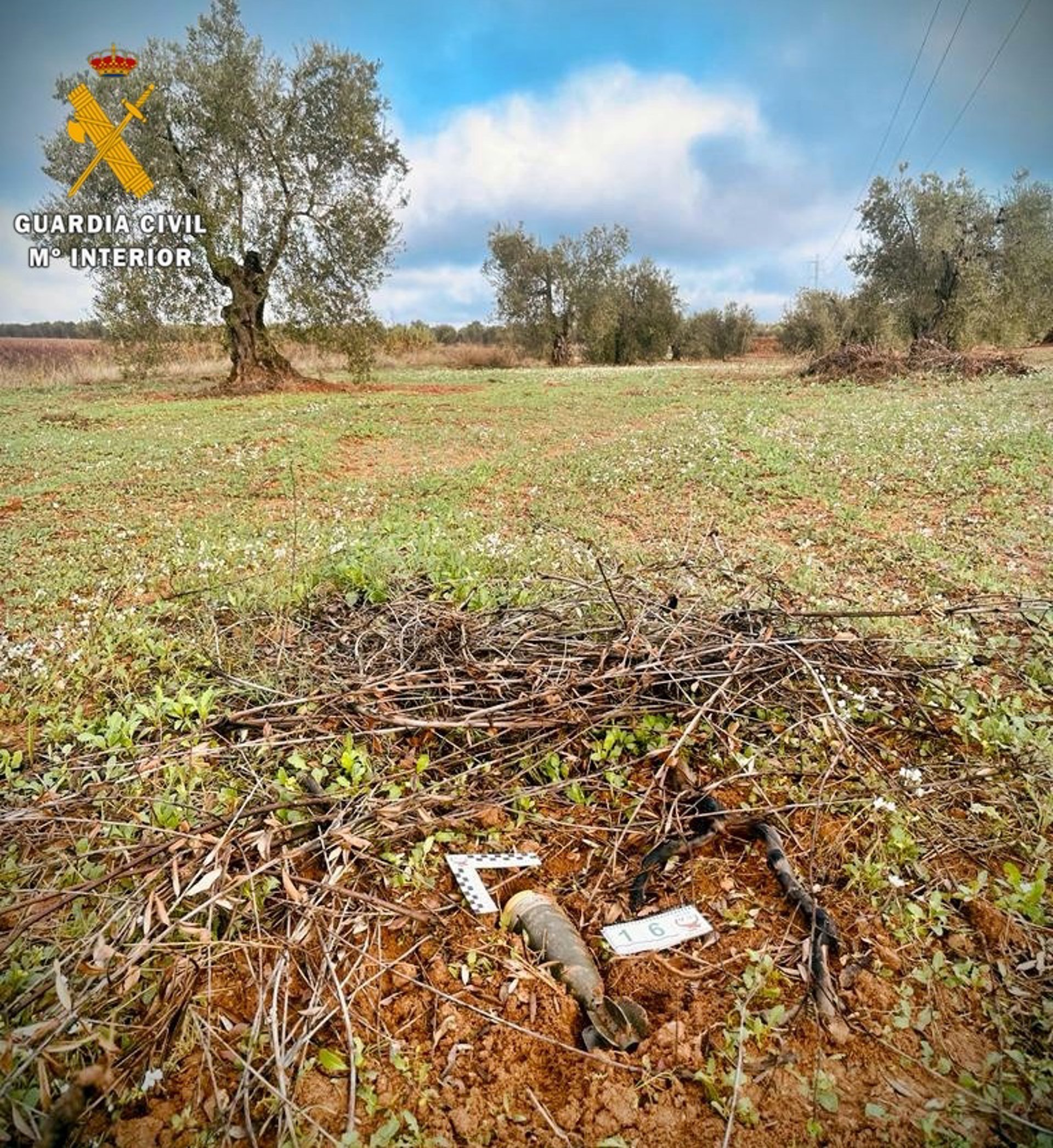 Cuando el propietario de la explotación realizaba labores agrícolas en su olivar descubrió una granada bajo la tierra, por lo que alertó inmediatamente a la Guardia Civil de esa localidad.