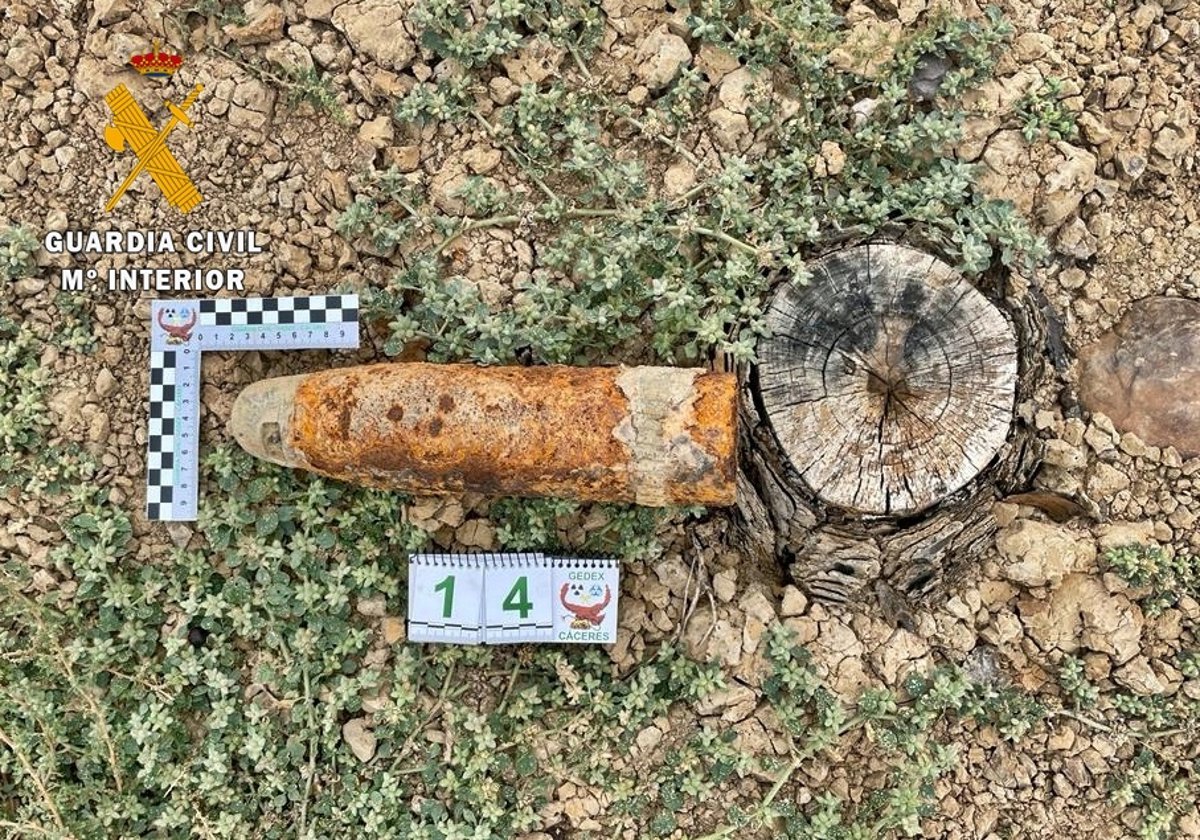 El Grupo Especial de Desactivación de Artefactos Explosivos (Gedex) de la Guardia Civil ha desactivado un proyectil de artillería hallado en una finca del término municipal pacense de Peñalsordo.