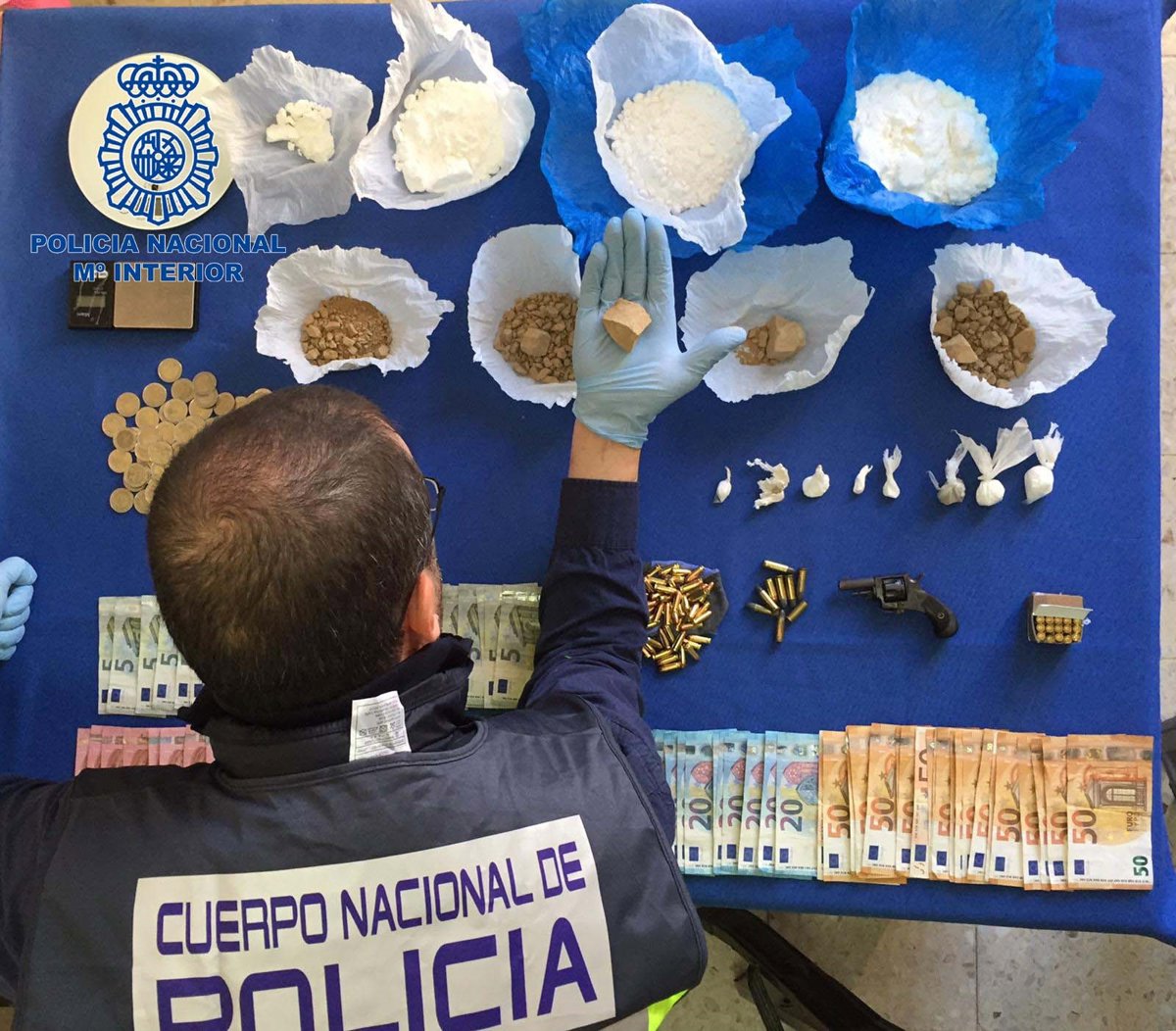 En total se han intervenido 135 gramos de cocaína, 183 gramos de heroína, 332 gramos de sustancia de corte, dos básculas de precisión, un revólver, un arma larga, diversa munición y 3.000 euros.
