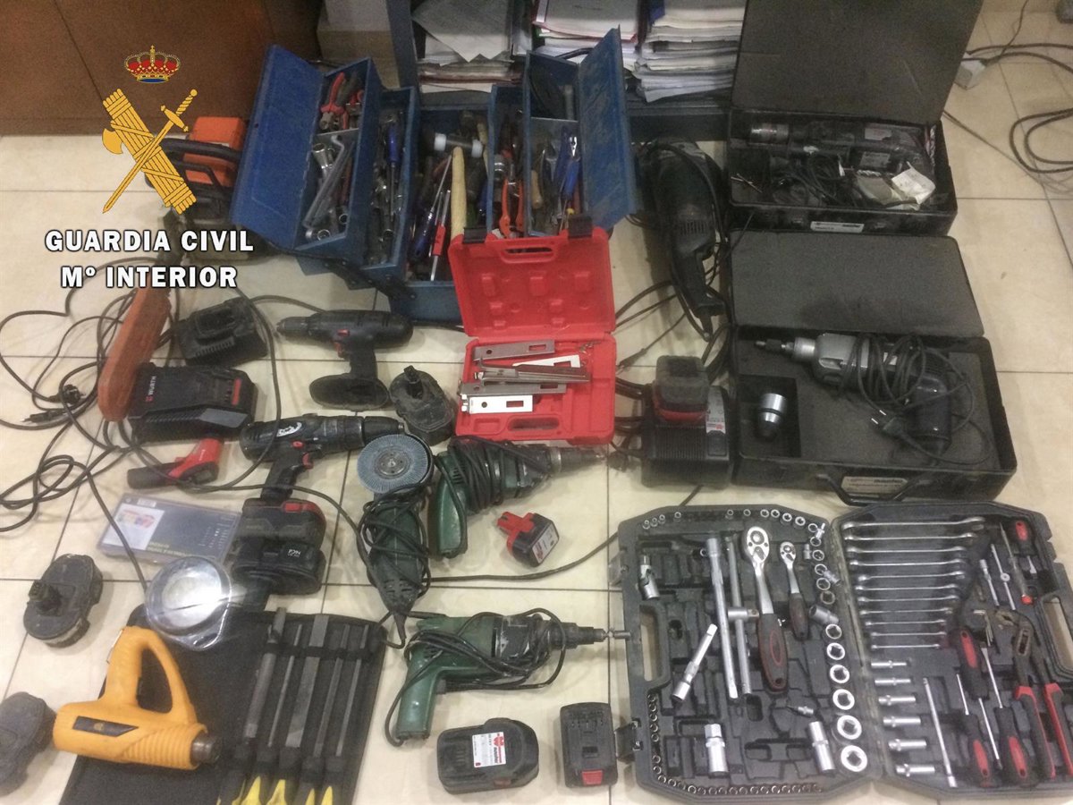 Entre las herramientas recuperadas por la Guardia Civil, se encontraban un taladro neumático, cinco taladros eléctricos con sus baterías y cargadores, un calentador eléctrico, un telémetro láser con medidor de temperatura, una motosierra, dos sierras radiales, una caja de herramientas profesional, un juego de herramientas de tocle, un juego de limas para metales y un juego de extractores de rodamientos, continuando las gestiones de los agentes para averiguar el destino del dinero y del resto de herramientas robadas.