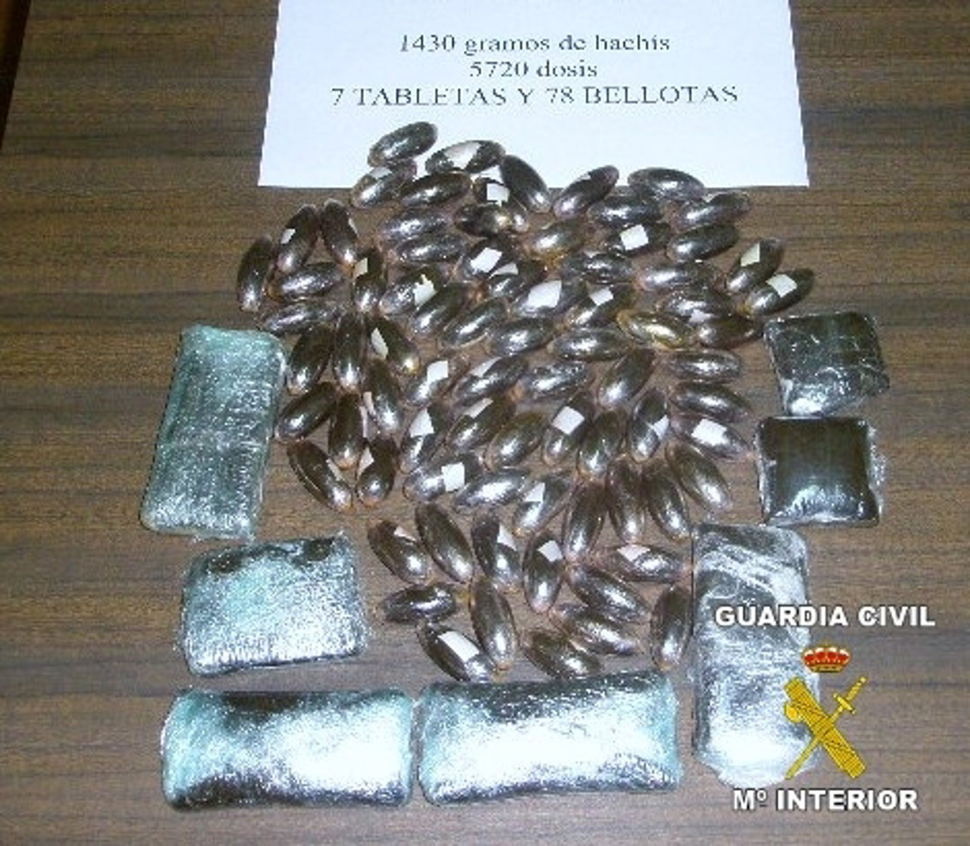 Explica la Guardia Civil que una vez en las dependencias oficiales y "tras un minucioso registro de las prendas de vestir de la ahora detenida, se hallaron otras tres tabletas más ocultas en forro de la falda".