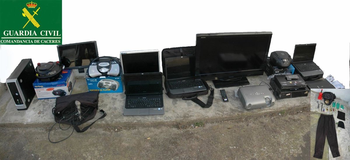 Los detenidos, tras afirmar ser los autores del robo, entregan a la Guardia Civil todos los efectos sustraídos, principalmente material informático, propiedad de citado colegio.