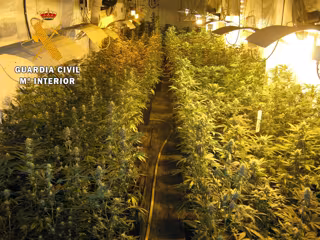 Han intervenido cerca de 1.000 plantas, tres kilogramos de cogollos de marihuana, así como varias armas y todo tipo de útiles para el cultivo y producción de la droga.